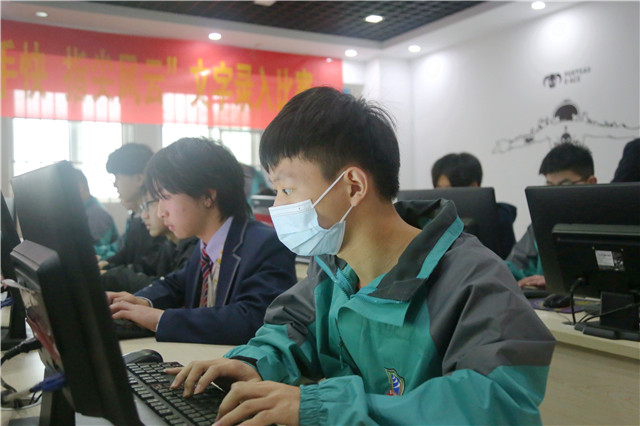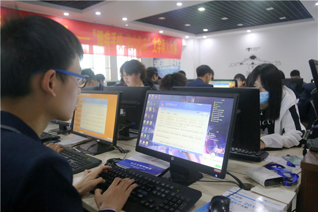 “比賽開始!”隨著老師的開賽指令發(fā)出,教室里迅速被鍵盤敲擊聲充斥環(huán)繞。只見同學(xué)們個個神情專注,眼手結(jié)合,十指并用,斗志在這一刻被激發(fā),只見屏幕上一行行的空白被不斷填滿。