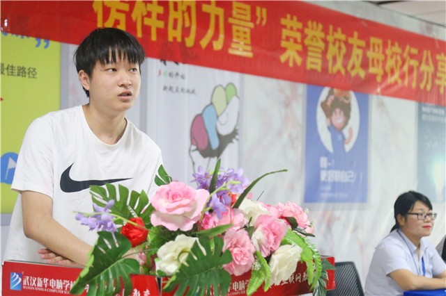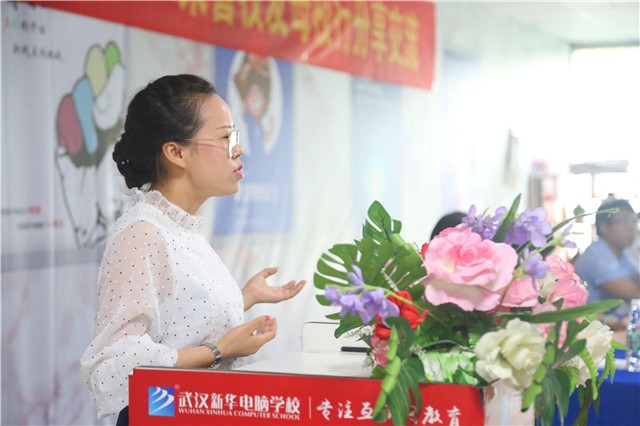 武漢新華電腦學校創就業指導中心劉老師向同學們介紹了本次參與分享交流的畢業生,表達了對畢業生邁向人生新征程的祝賀,同時也感謝畢業生向同學們分享寶貴經驗供大家學習和參考。